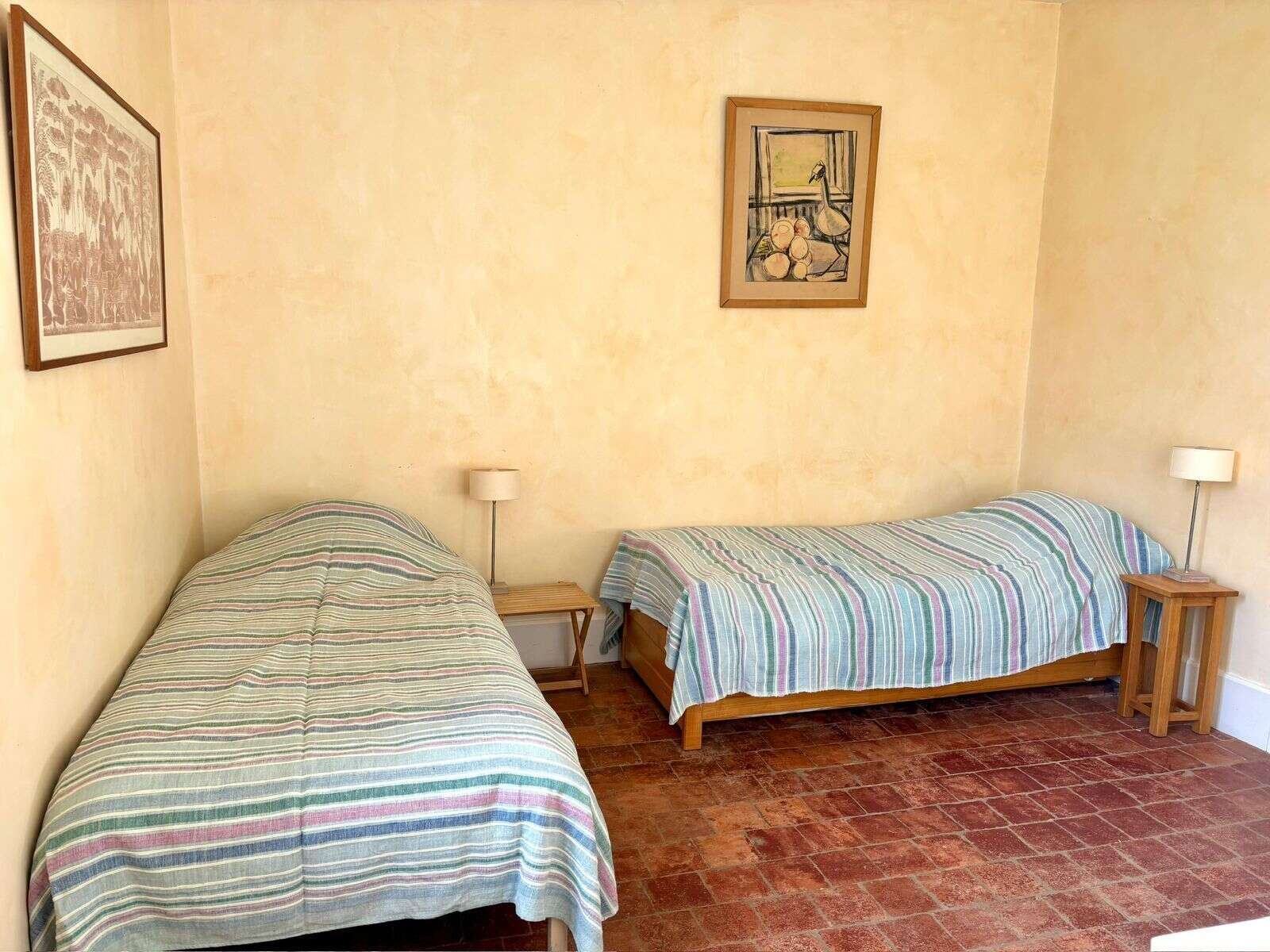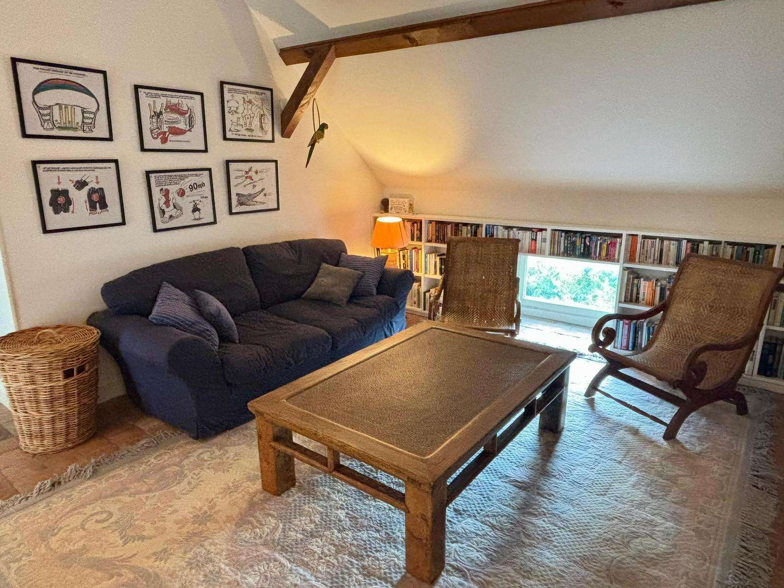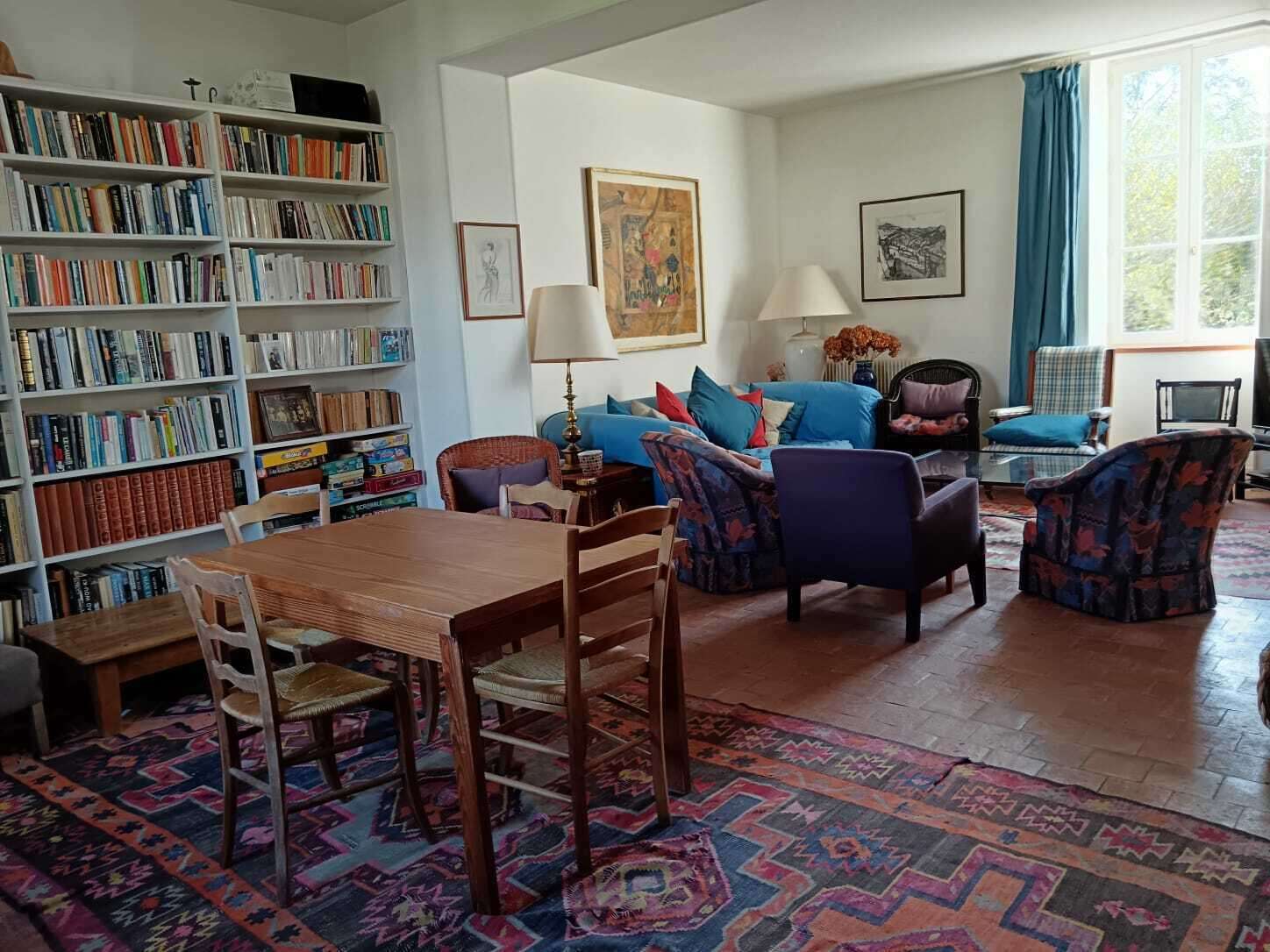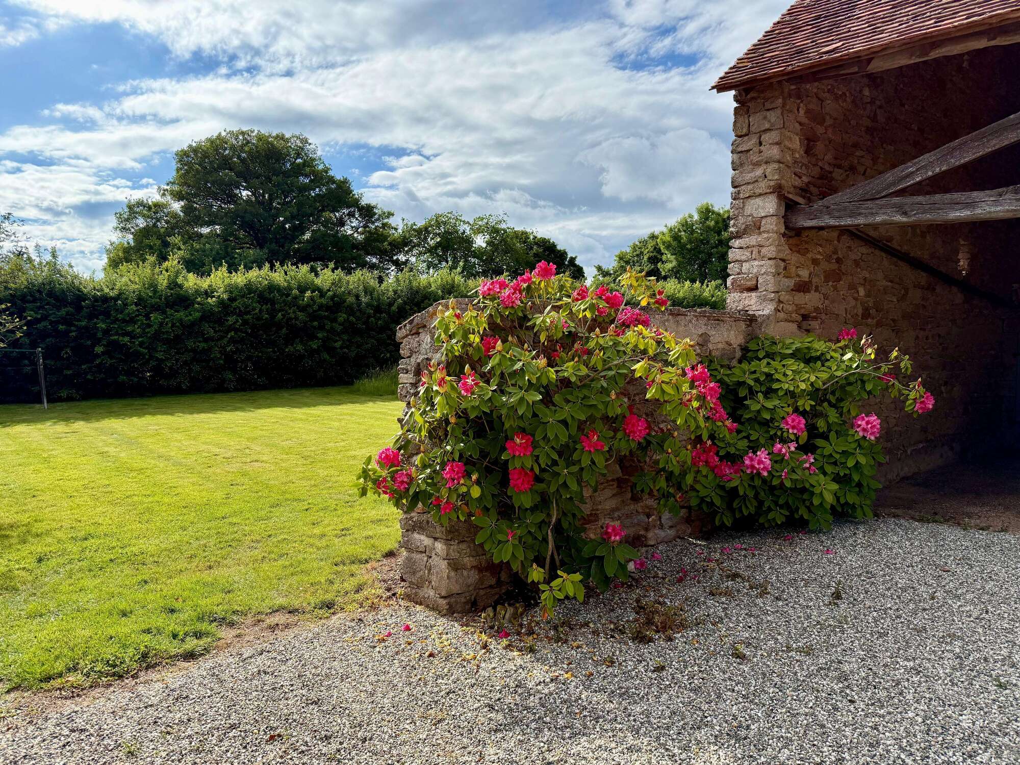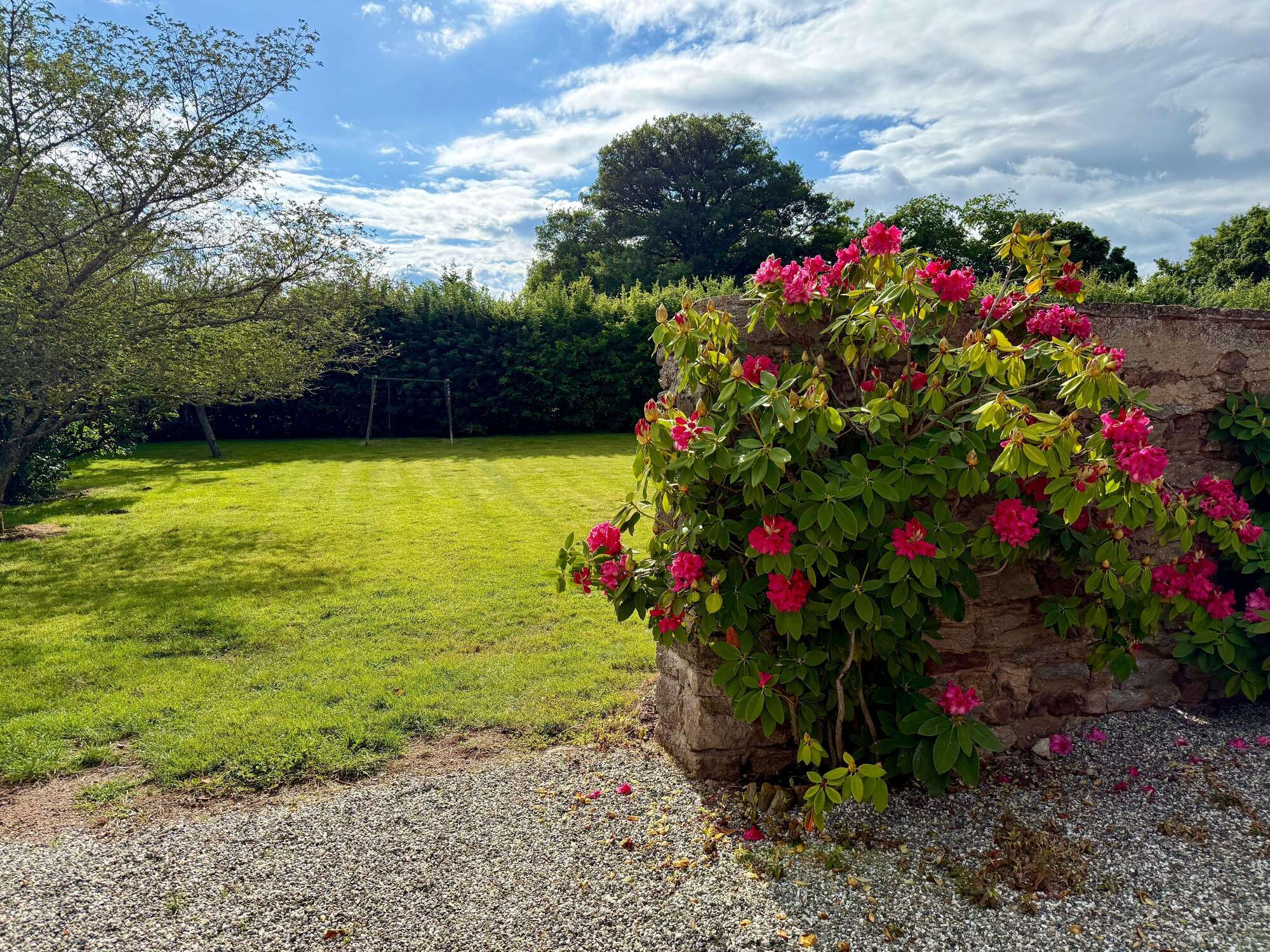Cette maison bucolique est entourée d'une clôture en pierre, au milieu d'un écrin de verdure entretenu. C'est une grande maison familiale qui se veut à la fois paisible, confortable et conviviale.