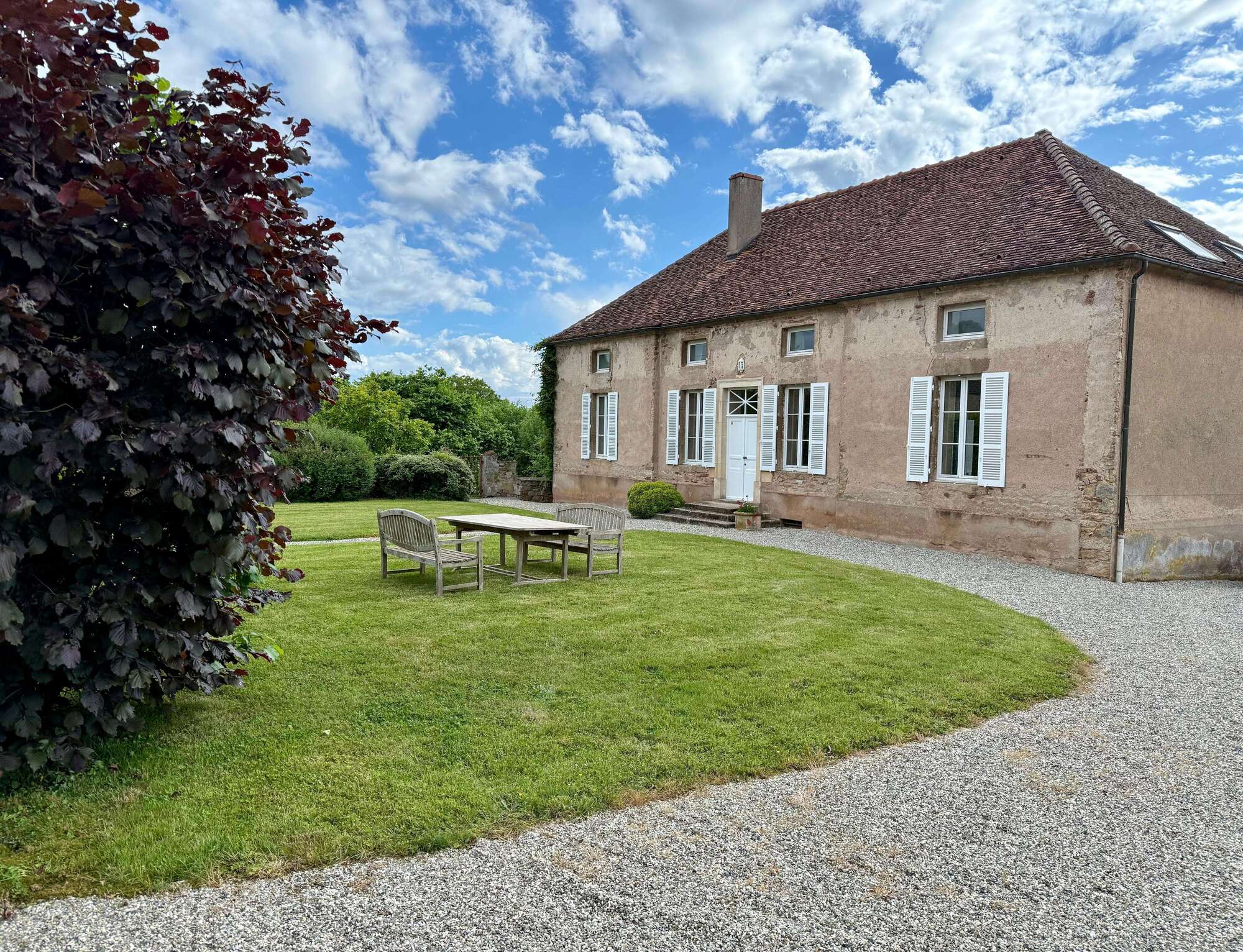 Notre maison est un ancien corps de ferme construit en 1787 par trois frères maçons, dans le joli village de Thoste en Côte d'Or. Ce village est connu pour sa terre rouge en les minerais de fer, qui a donné la couleur rouge des pierres de notre maison.