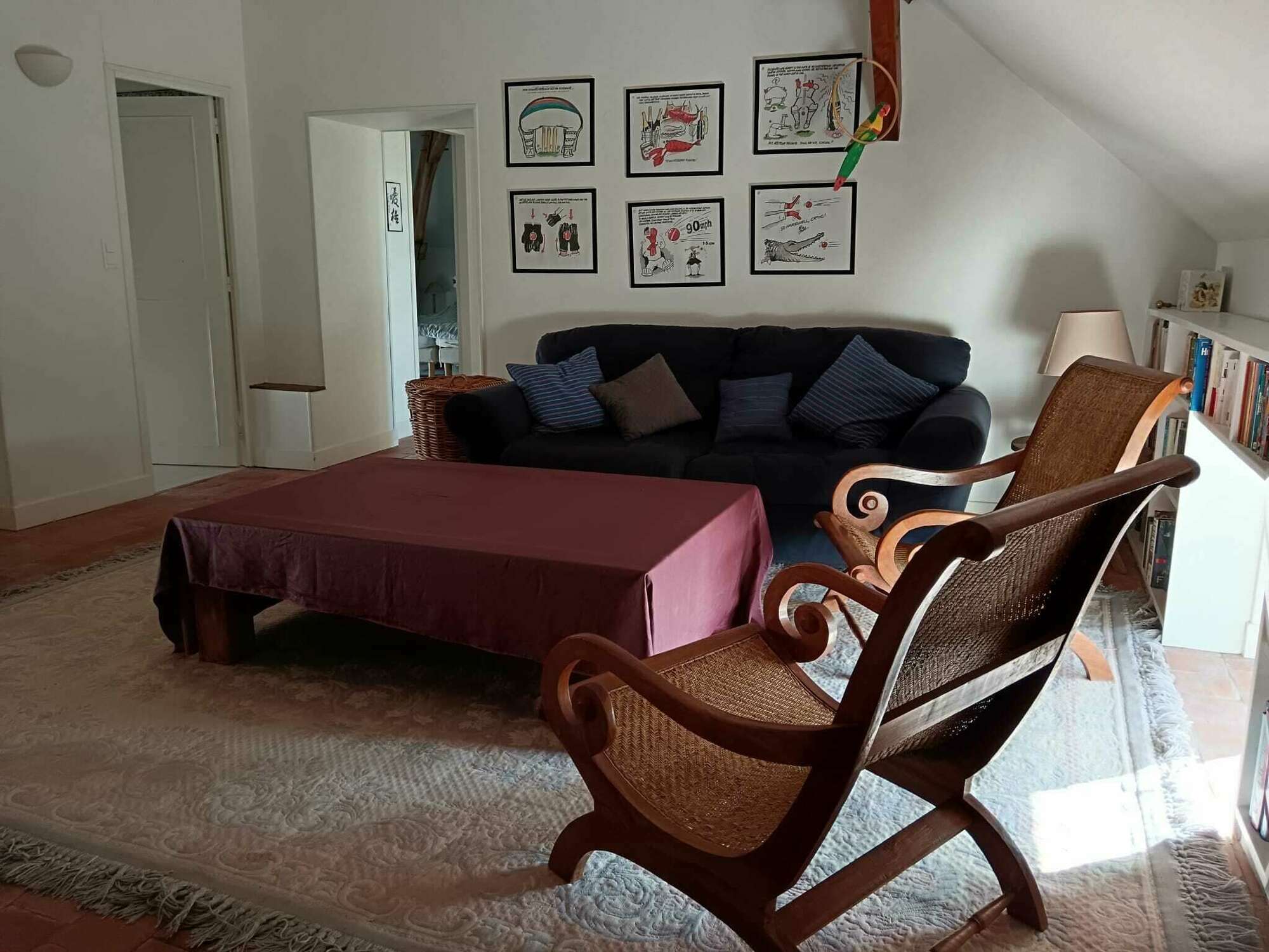 Cette maison bucolique est entourée d'une clôture en pierre, au milieu d'un écrin de verdure entretenu. C'est une grande maison familiale qui se veut à la fois paisible, confortable et conviviale.